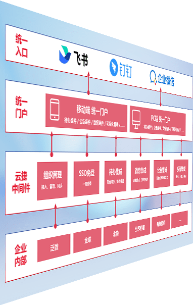 对协作平台提供支持服务,,,支持企业应用与协作平台对接,,,包含组织同步、、、消息集成、、、待办集成等。。支持目前主流的协作平台:钉钉、、、企微和飞书。。。
